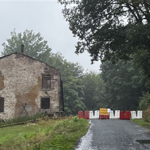 Lees verder ...In de afdaling van de Col de Mon Repos (km 117) is de boswachterswoning op de hoek van de afslag (na 3 km) afgebrand.